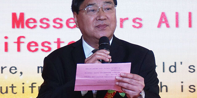 全球和平使者联盟主席蒋位卿先生宣读了全球和平天使者联盟倡议书,他说:“和平,是人类最美好的愿望,建筑和谐美丽家园,是全人类的同一个梦想……”。
