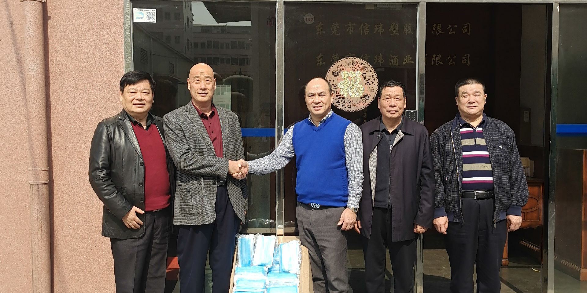 参加本次捐赠防疫物资主要领导有:联合国华人协会薛世举会长(左二)、联合国华人协会主席团杨兰举副主席(左一)、联合国华人协会主席团毛敬学副主席(右二)、联合国华人协会主席团安安贞秘书长(右一)、东莞市信玮酒业有限公司陈习坚董事长,陈董事长表示非常感谢华协将防疫物资捐赠给一线的工作人员,我们一定能打赢这场疫情防控阻击战。