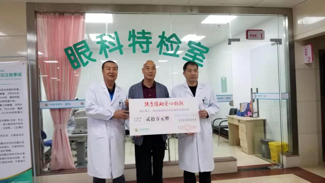 2019年3月9号,联合国国际合作协调局东盟总局、联合国华人协会广东工作委员会、联合国华人协会中国南药发展委员会一行7人在薛局的带领下,冒着大雨前往广州协佳医院白内障复明工程发起爱心捐助。